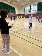 体育役員さん達は慣れない羽根に振り回されていましたが、楽しく競技をすることができました!