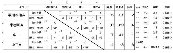 天伯校区に勝利しましたが、岩田校区はオープン参加という形で対戦したため、勝敗に関係なく1試合のみの参加でした。